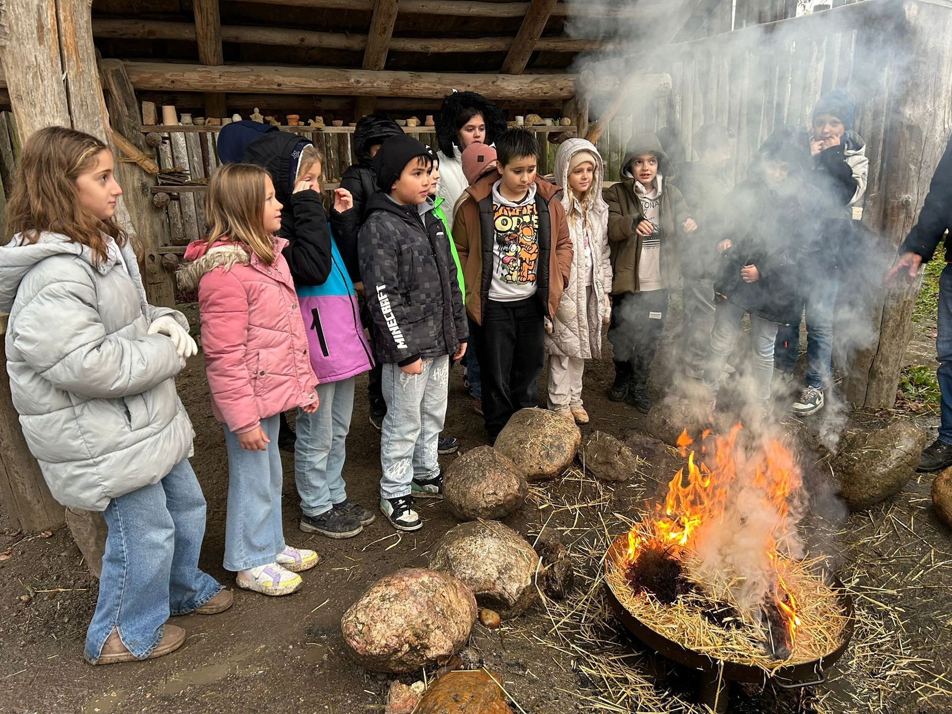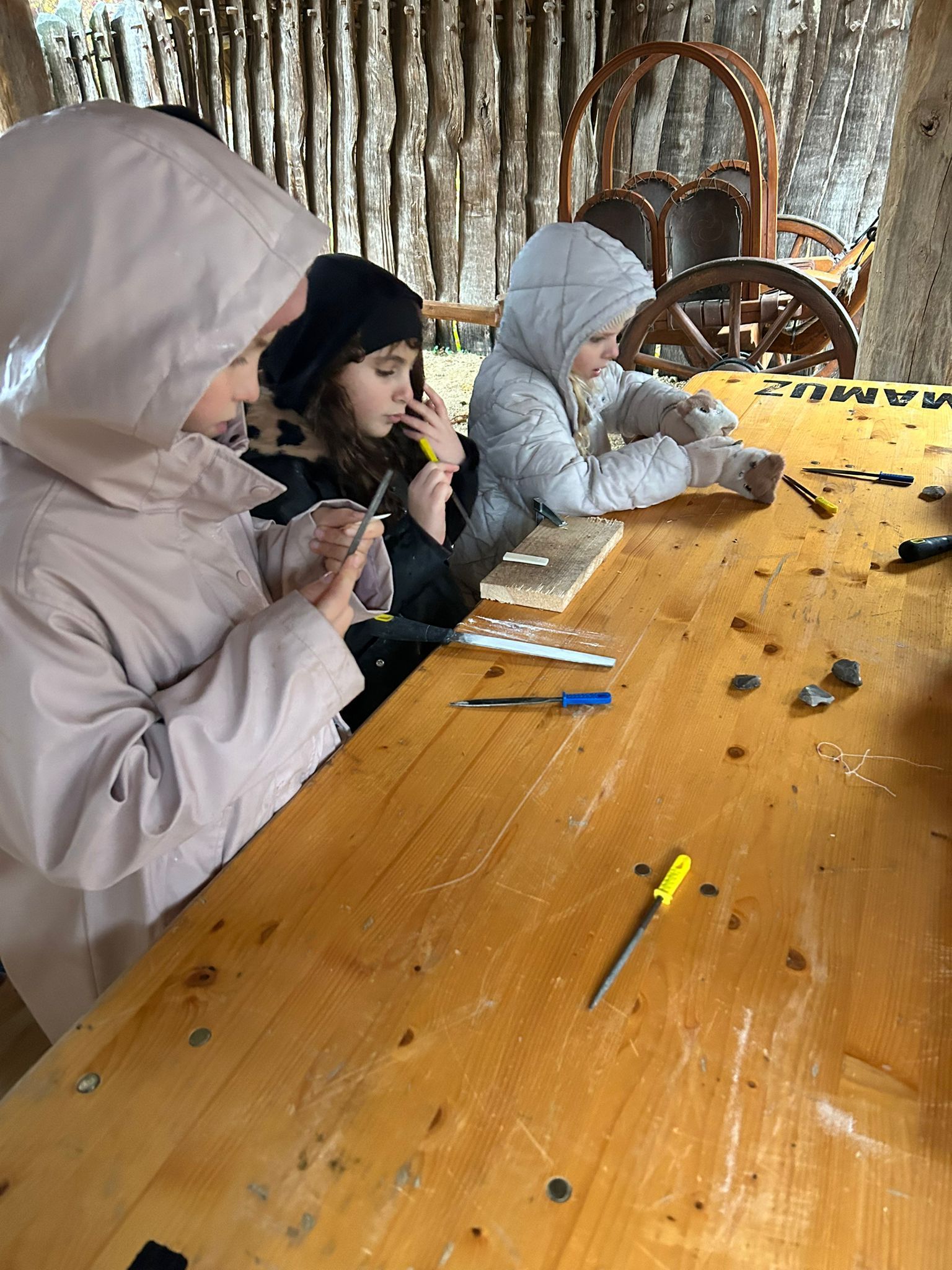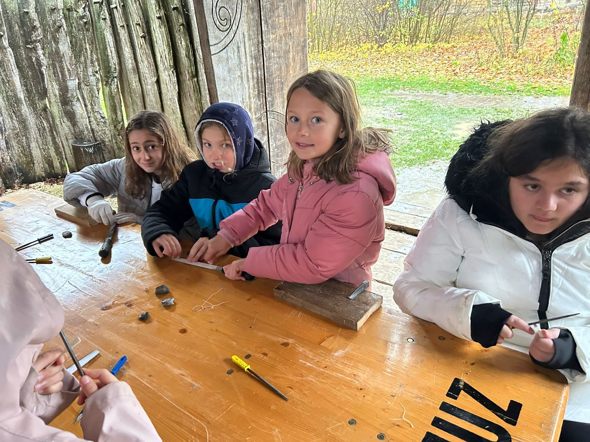 Die Kinder der Klassen 4abc erlebten einen ganz besonderen Tag im MAMUZ. Gemeinsam tauchten wir tief in das Leben der Steinzeit ein und lernten, wie Menschen damals ihren Alltag meisterten. Ein echtes Highlight war die Jagd auf ein Mammut mit einem Speer, das war ein spannender Einblick in die Überlebensstrategien vergangener Zeiten. Außerdem stellten wir aus Knochen unseren eigenen Schmuck her und merkten schnell, wie viel Geduld und Geschick dafür notwendig sind. Trotz Dauerregen gelang es uns, ein echtes Feuer zu entfachen, an dem wir uns zum wärmen konnten. Ein lehrreicher, abwechslungsreicher und unvergesslicher Tag für die Kinder der 4. Klassen.